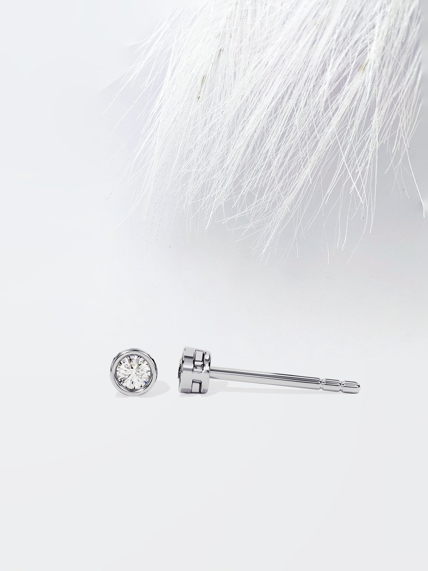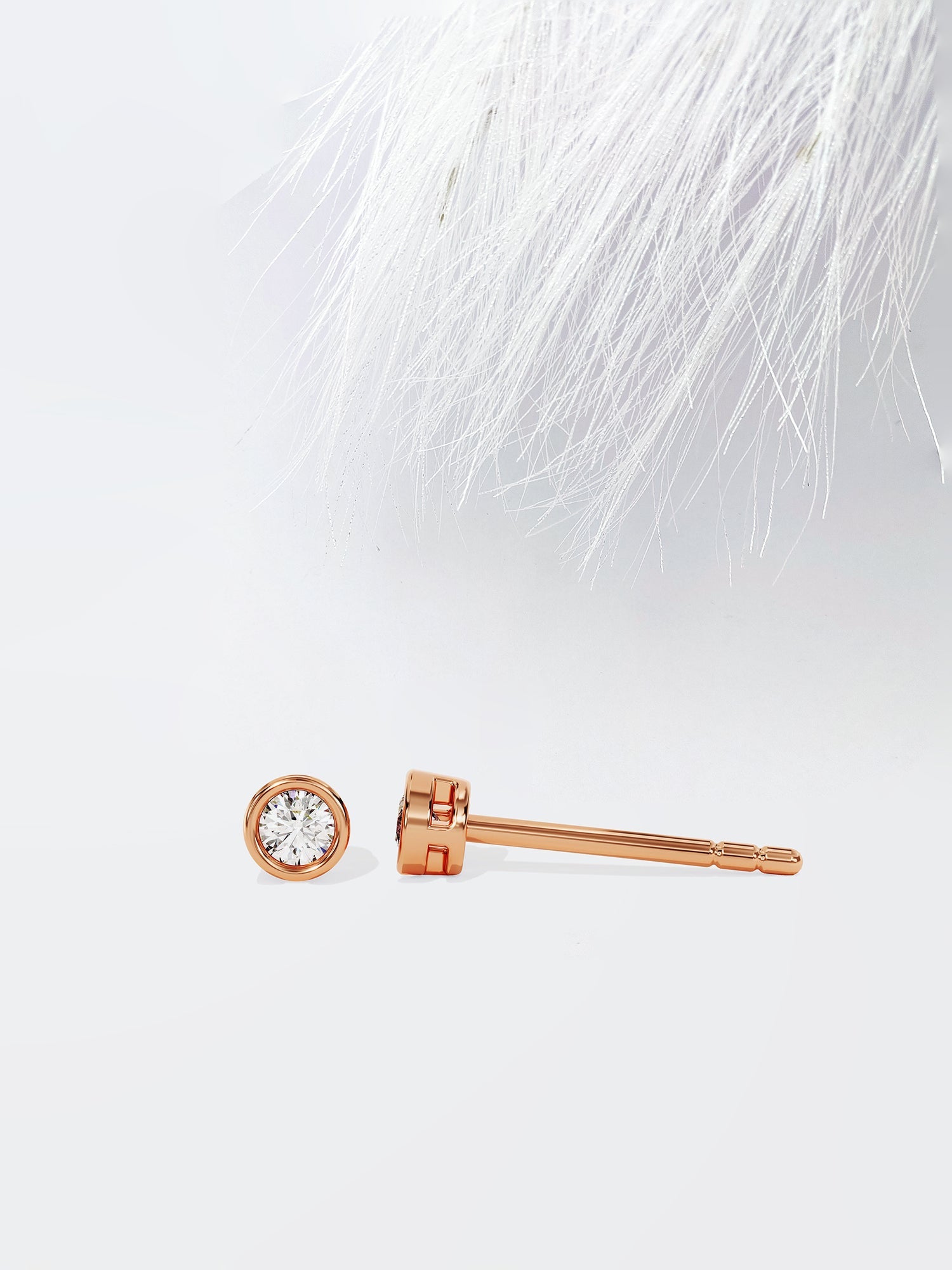 ? Introducing our delicate 0.10ct round-cut bezel set moissanite diamond earrings for women, crafted to add a touch of elegance and sparkle. Available in solid gold options of 10K, 14K, or 18K purity, and in yellow, rose, or classic white gold tones, these earrings feature petite round-cut moissanite diamonds securely set in a stylish bezel setting. Their minimalist design and subtle sparkle make them perfect for everyday wear or special occasions, adding a hint of sophistication to any ensemble. These earrings are a versatile and cherished addition to your jewelry collection, reflecting timeless beauty and impeccable craftsmanship.